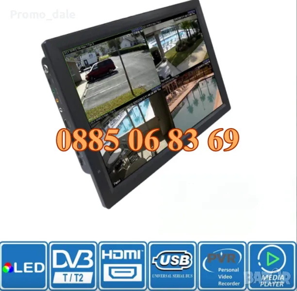 Портативен, лесно преносим Телевизор с цифров тунер и вградена акумулаторна батерия за автономна работа. Подходящ за използване при излет, в каравана, камион, кола, автобус и др. Мултимедийни функции - можете да гледате филми, клипове, да слушате музика и преглеждате снимки. AV вход за подаване на сигнал от външен източник, като DVD, сателитен, кабелен приемник, камера за задно виждане на кола, камион и др.