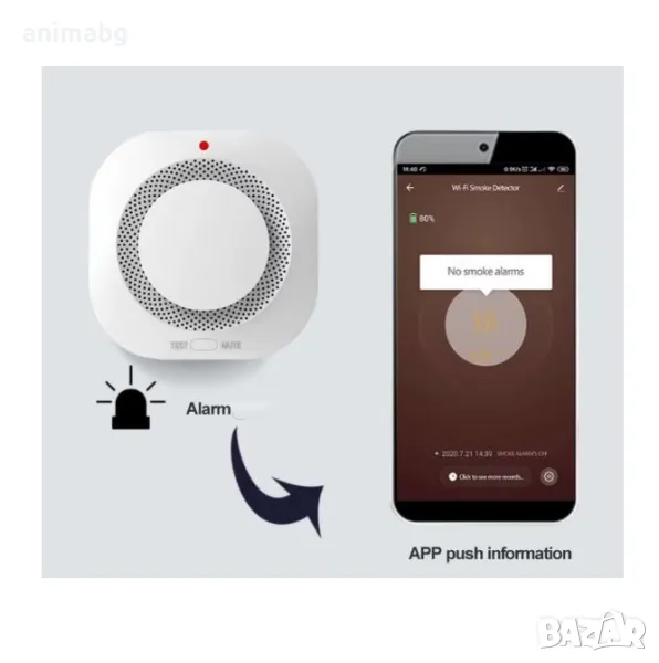 ANIMABG Интелигентна противопожарна защита, Wifi детектор за дим