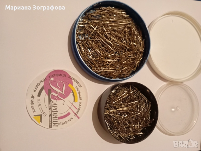 Два комплекта неизползвани карфици на същия производител, съхранявани в кутия от крем, отлично запазени.