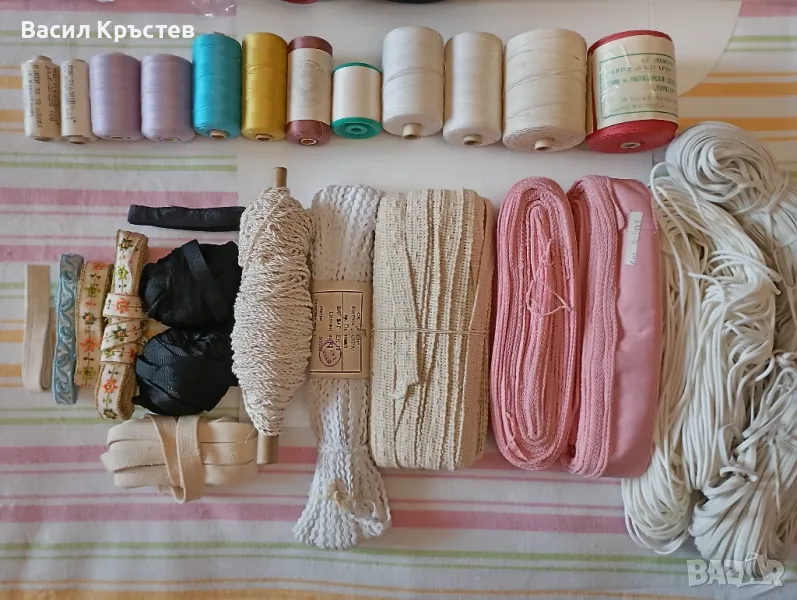 Кинкалерия, - макари, галон, копринен шнур, зиг заг гайтан, объл шнур, перделък, ластик, ципове и др.