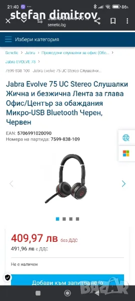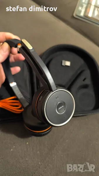 Слушалките свирят много приятно пълен комплект на снимките се вижда състоянието им .Bluetooth Слушалки Jabra Evolve 75 Stereo UC BluetoothJabra EVOLVE 75 e най-новата и иновативна слушалка от Jabra. Най-добрата безжична слушалка за работа в отворен офис. Световноизвестни високоговорители с HD voice за кристално чисти разговори и музика. Намалете шума, прекъсванията и нежеланите звуци с високата ANC технология за да увеличите производителността. Повече свобода с двойна Bluetooth® връзка за свързване към две устройства едновременно за разговори и музика. Движете се свободно до 30 метра от свързаното устройство. Удобство през целия ден - кожени наушници за ушите и удобен дизайн за целодневна употреба.Jabra Evolve 75 е сертифицирана с всички водещи доставчици на Unified Communications.