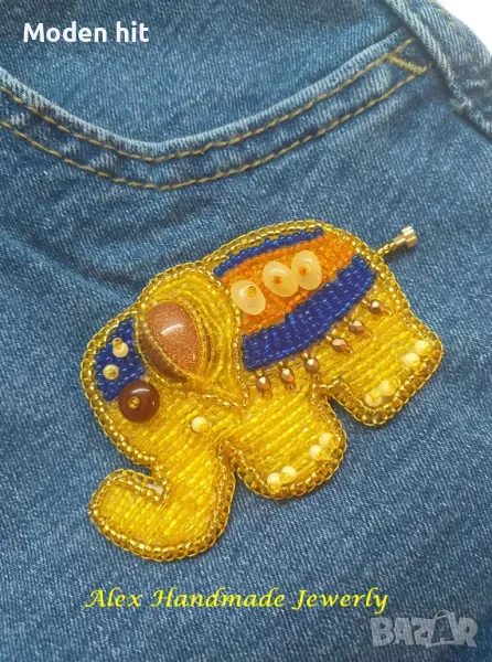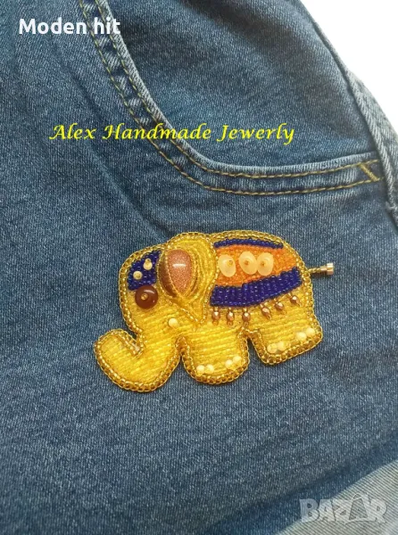 Брошка - аксесоар "Индийски слон" с пясъчен авантюрин. Ръчна изработка.