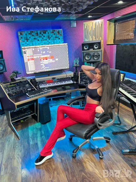 Нов еластичен спортно елегантен червен панталон висока талия полиамид → Обява 49702579