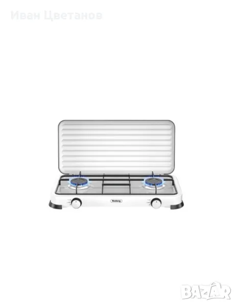 Двоен газов котлон с капак; Боядисан панел от въглеродна стомана. Горелка от лят алуминий с емайлирана капачка. Метална скара за тиган. По-добър пламък и по-бързо готвене. Икономичен и мощен. Висококачесвен, безопасен и лесен за използване. Мощност: 2х2.2 kWh; Тип газ: Бутан, Пропан и техните смеси; Налягане: 30 mbar; Размер: 58х28х6 см; Уредът е предназначен за използване на открито и проветливо място! Задължително прочетете инструкциите преди да изпозлвате уреда! ВНИМАНИЕ: Някой от частите може да са горещи! Съхранявайте и използвйте далеч от деца! Цвят: Черен, бял; 24 месеца гаранция.