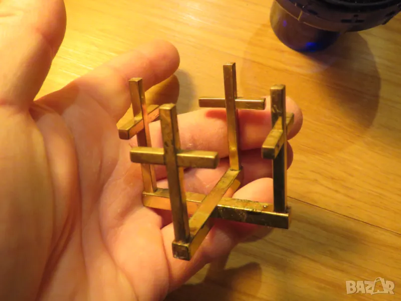 Старинно малко настолно кандило с бронзова стойка с кръстове за да се помолите на Бог Исус Христос