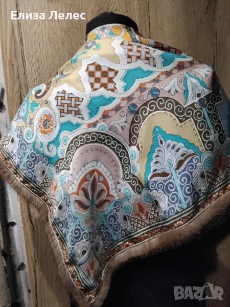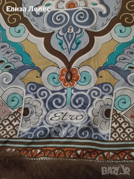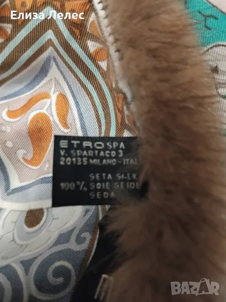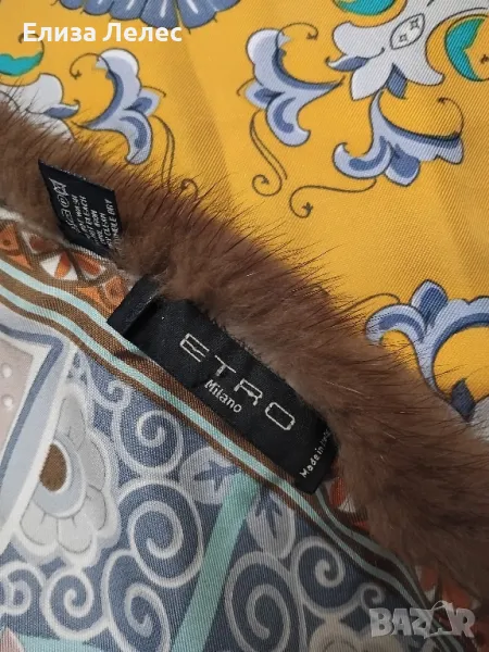ETRO копринен шал с кант от естествена кожа на норка.В много добро състояние, съвсем леки,едвам забележими петънца,последни 3 снимки.