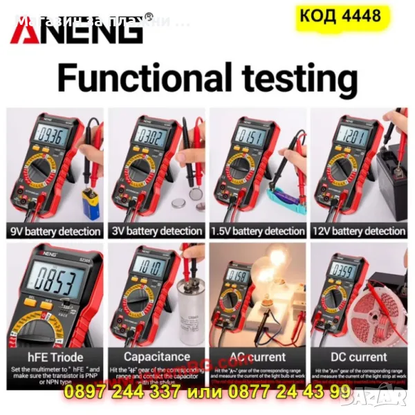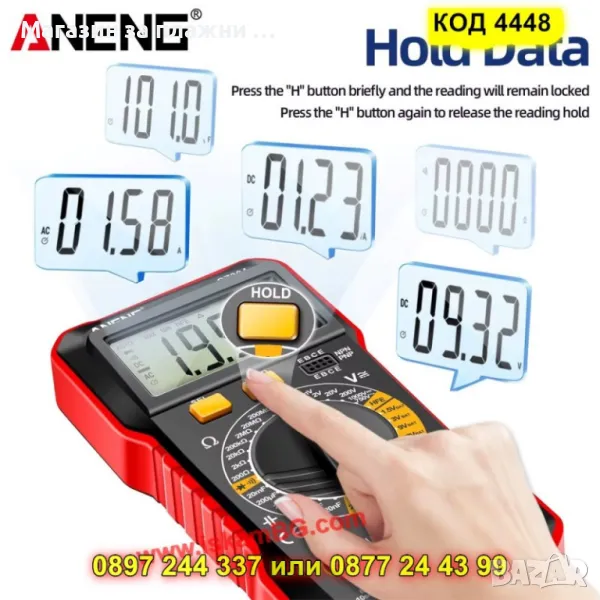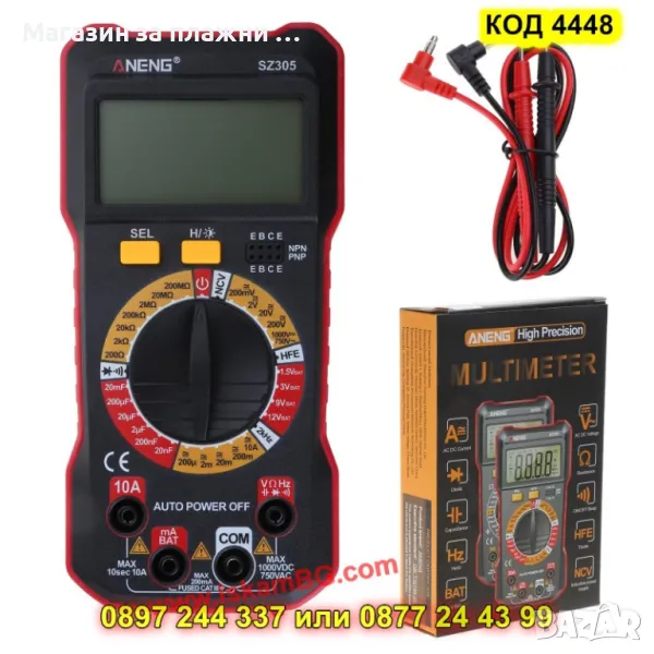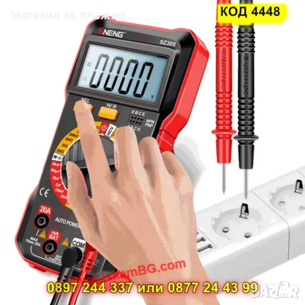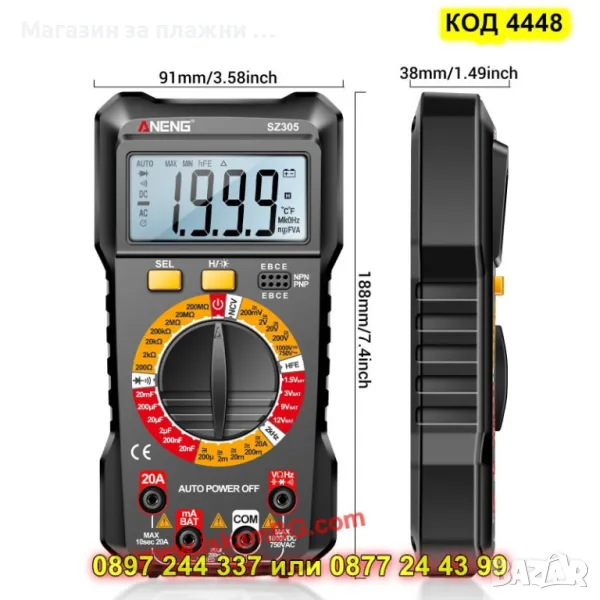 Компактен и надежден цифров мултиметър за измерване на AC/DC напрежение, ток, съпротивление, капацитет, тестове на полупроводници и безконтактно откриване на напрежение (NCV). Големият LCD дисплей (65 x 35 mm) осигурява ясни показания, а функциите HOLD, автоматично изключване и звуков сигнал улесняват работата.