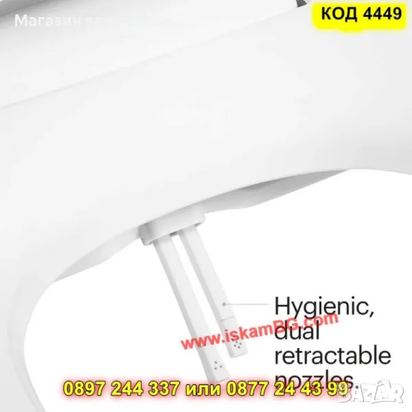 Практична и удобна тоалетна седалка с вградено биде, осигуряваща по-добра хигиена и комфорт. Разполага с двойна дюза за ефективно почистване на интимната зона и седалището.
