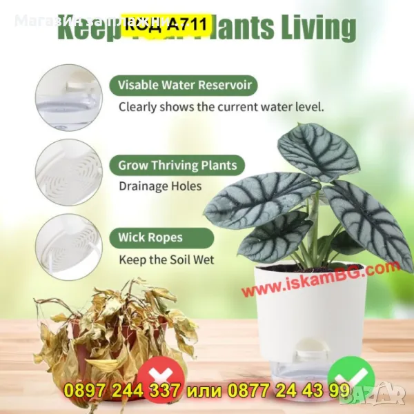 Общи размери на саксията (височина/диаметър): 20.5 х 16 см
