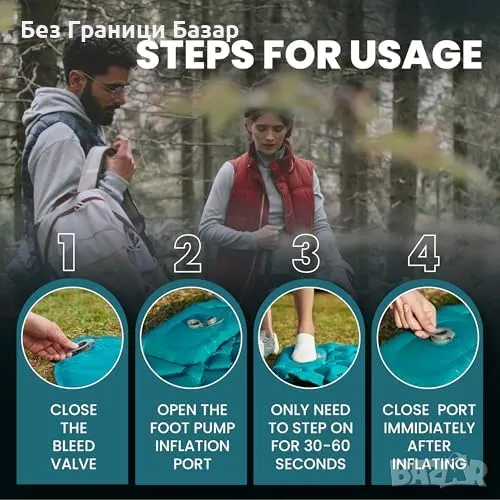 Бързо надуване с крачна помпа – готов за 40 секунди