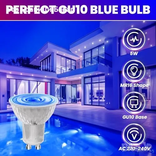 Нови 2 броя GU10 MR16 LED Сини Крушки 5W Акцентно Декоративно Осветление