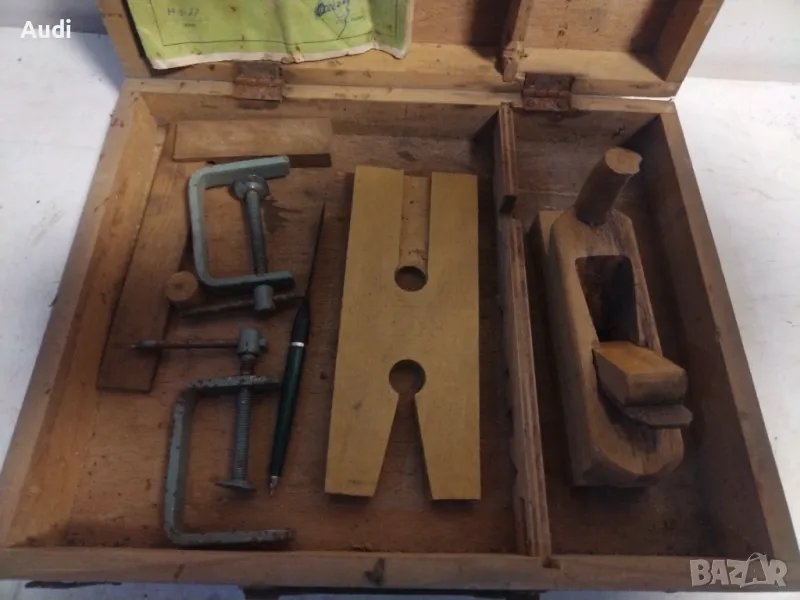 Комплект дърводелско ренде, прав ъгъл, шаблон. 2 скоби и кутия. → Обява 49705921