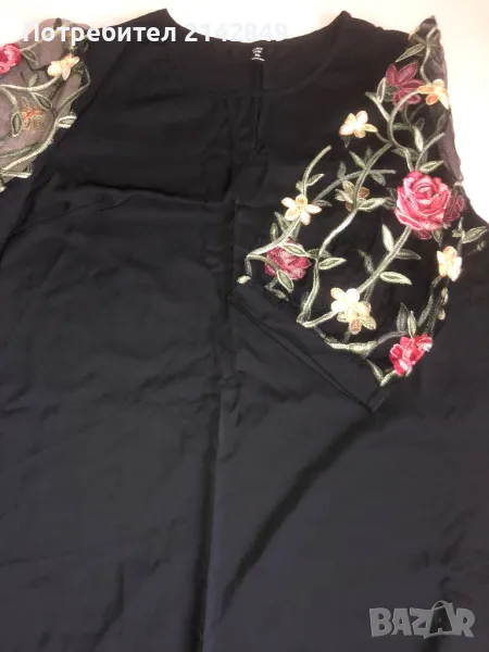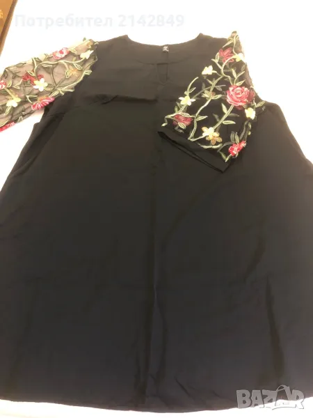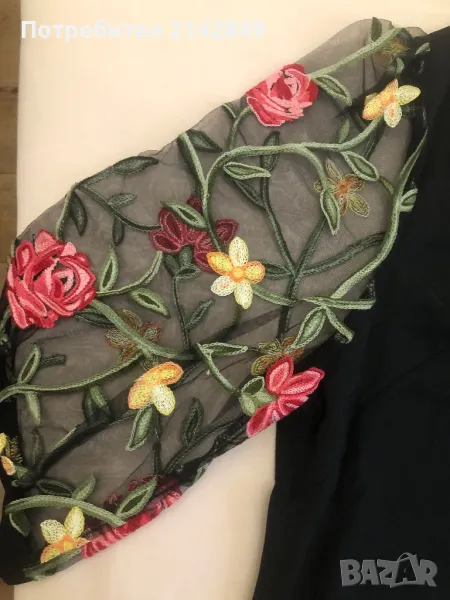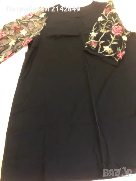 Предлагам ви чисто нова, елегантна черна рокля с флорален мотив на ръкавите.