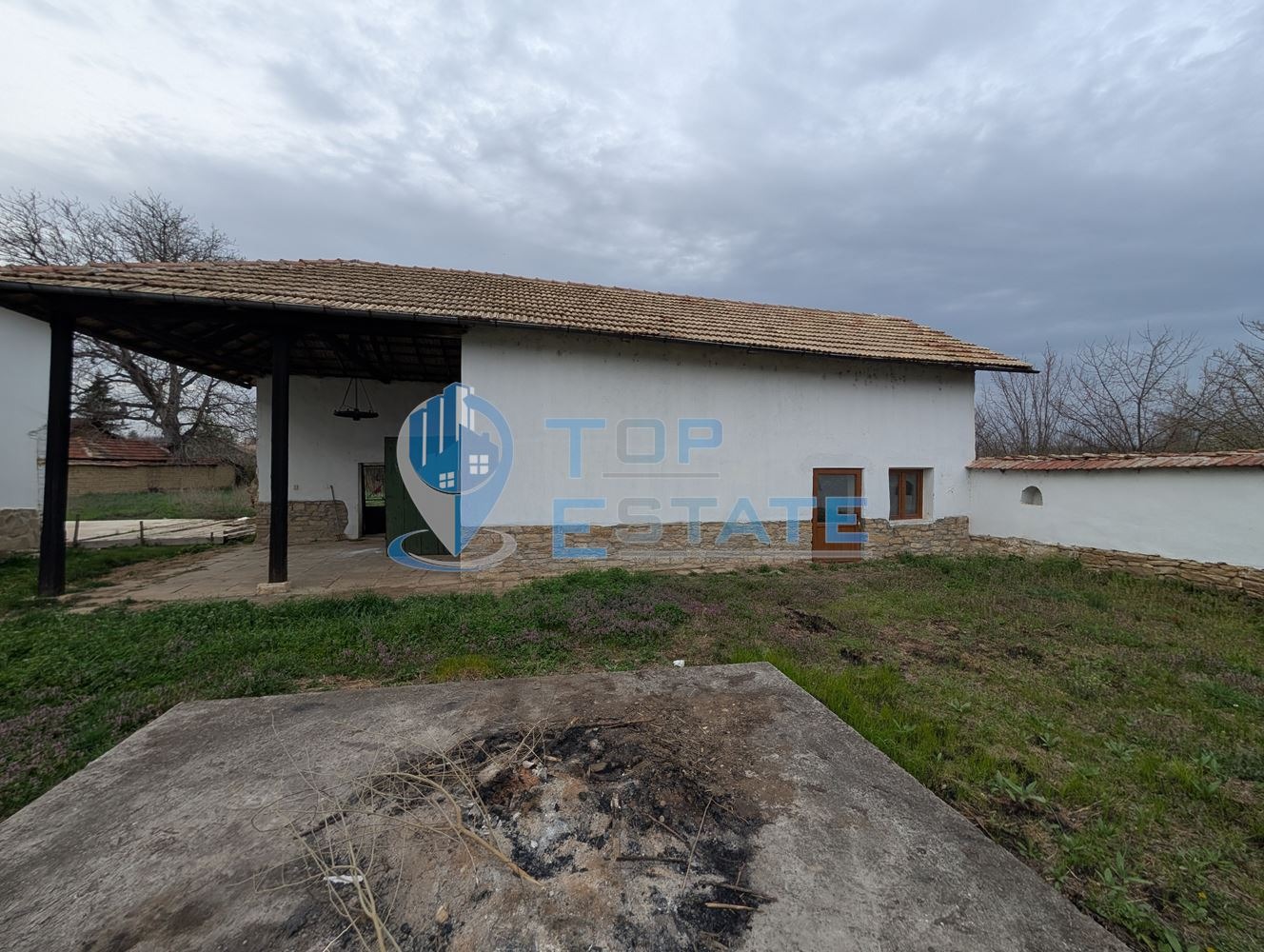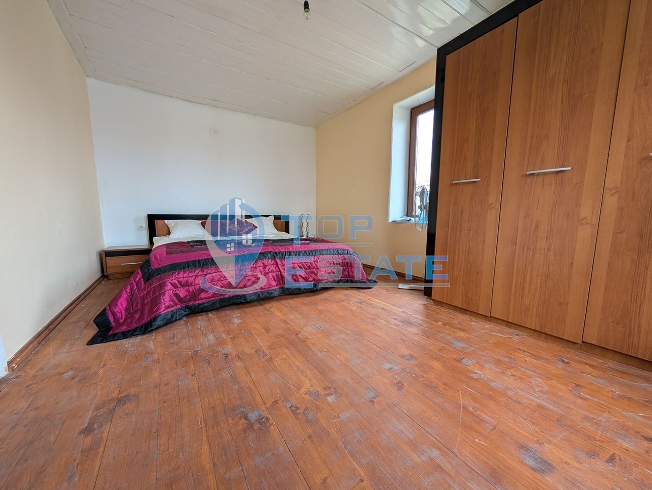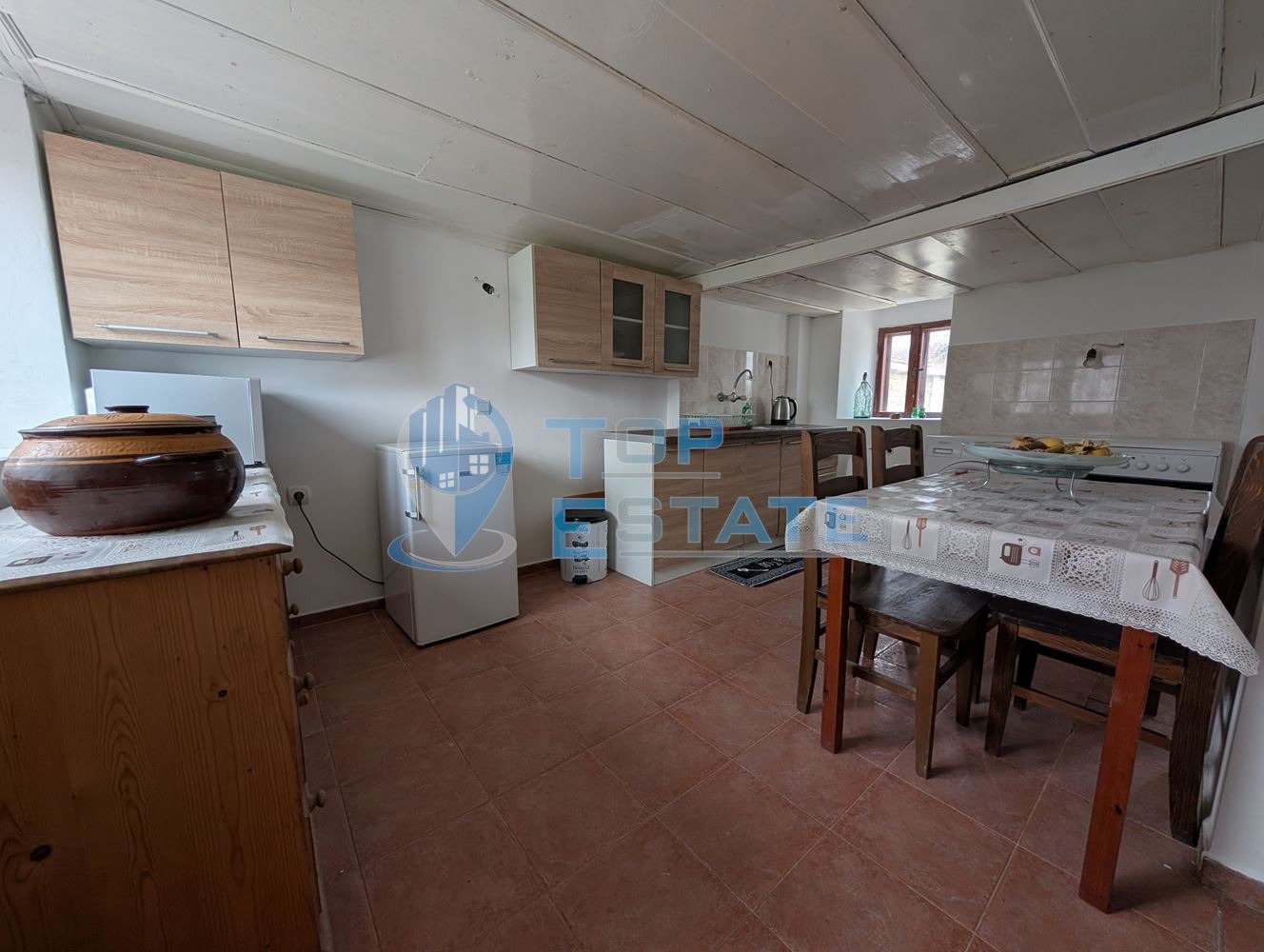 НАМАЛЕНА ЦЕНА! Топ Естейт Недвижими имоти Ви предлага двуетажна къща с голям двор и кладенец в село Ресен, област Велико Търново. Село Ресен е едно от най-големите и развити села в областта. Намира се на 16 км от град Велико Търново. Селото е добре уредено, разполага с редовен автобусен транспорт, магазини, заведения, аптека, училище и детска градина. Къщата е двуетажна със застроена площ от 60 кв. м, дограмата е сменена с PVC, покривът е ремонтиран. Първият етаж се състои от входно антре, кухня, всекидневна, баня с тоалетна. Вътрешно стълбище ни отвежда до втория етаж, състоящ се от коридор, две спални, една от които отвежда до по-малка стая - трета спалня, и баня с тоалетна. Къщата е в добро поддържано състояние, с възможност за разширяване и построяване на допълнителна жилищна площ от северната страна на къщата. Дворното място е с площ 1900 кв. м, равно и добре поддържано. В него има голяма стопанска постройка (60 кв. м) с навес, подходящ за изграждане на барбекю, складово помещение, втори навес и възможност за паркиране на автомобили. Номер на оферта: 3099. We speak English and German.