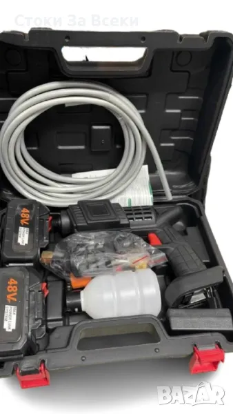 Открийте мощната акумулаторна водоструйка с 2 батерии 48V - идеалното решение за почистване на автомобили, дворове, фасади и градини. Тази преносима и ефективна водоструйка осигурява високо налягане за отстраняване на замърсявания, прах и кал. С включени две издръжливи литиево-йонни батерии, тя гарантира дълга и непрекъсната работа. Лека и удобна за пренасяне, водоструйката предлага гъвкавост и мобилност за всякакви нужди. Подходяща за дома и професионална употреба, този уред ще ви спести време и усилия. Поръчайте сега и направете почистването по-бързо и лесно!
