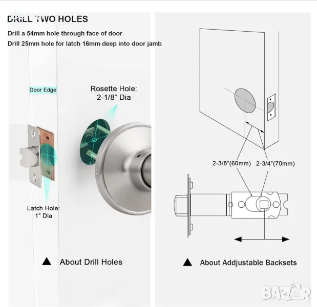 Предназначена за вътрешни врати с дебелина между 35–45 mm, тази дръжка за преминаване от неръждаема стомана се отличава с полиран никел и издръжлива тришпинделна структура. Необходим е 54 mm отвор с 25 mm отвор за резе и побира 60 mm или 70 mm задни части. Без ключалка или ключ, той се заключва от двете страни, което го прави идеален за килери, коридори или перални. Пакетът включва всички необходими компоненти за монтаж.