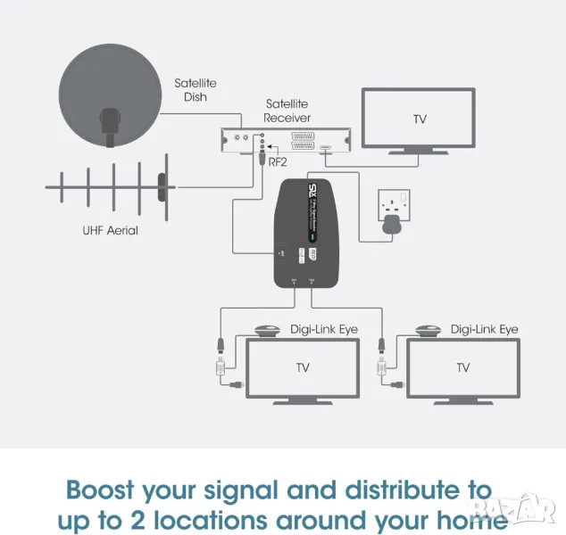 SLx Усилвател на ТВ сигнала, с два изхода 27822BMR - Увеличете вашия HD TV/FM/DAB сигнал. 2 начина