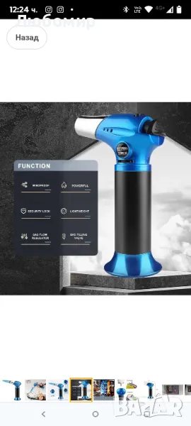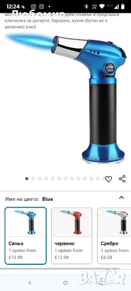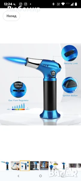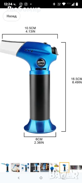 3 бр Бутанова факла, кухненска запалка, готварска многократна факла с регулируем пламък и предпазна ключалка за десерти, барбекю, кухня (бутан не е включен) (син)