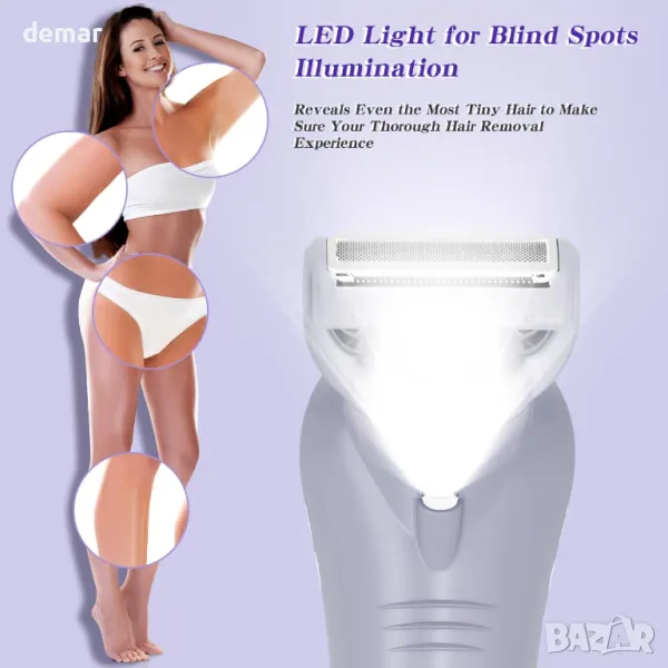 Тази електрическа самобръсначка 3 в 1 за жени включва сменяеми глави за големи зони, тесни петна и окосмяване по лицето, като предлага прецизно подстригване на краката, ръцете, подмишниците, бикини линията и лицето. Острите остриета от неръждаема стомана работят ефективно, подпомогнати от вградена LED светлина за ясна видимост. Може да се зарежда през USB, като осигурява до 90 минути безжична употреба след кратко зареждане. Напълно водоустойчив с рейтинг IPX7, той е безопасен както за сухо, така и за мокро използване, включително под душа. Компактен и преносим, той е идеален за вкъщи или при пътуване и е прекрасен, практичен подарък.