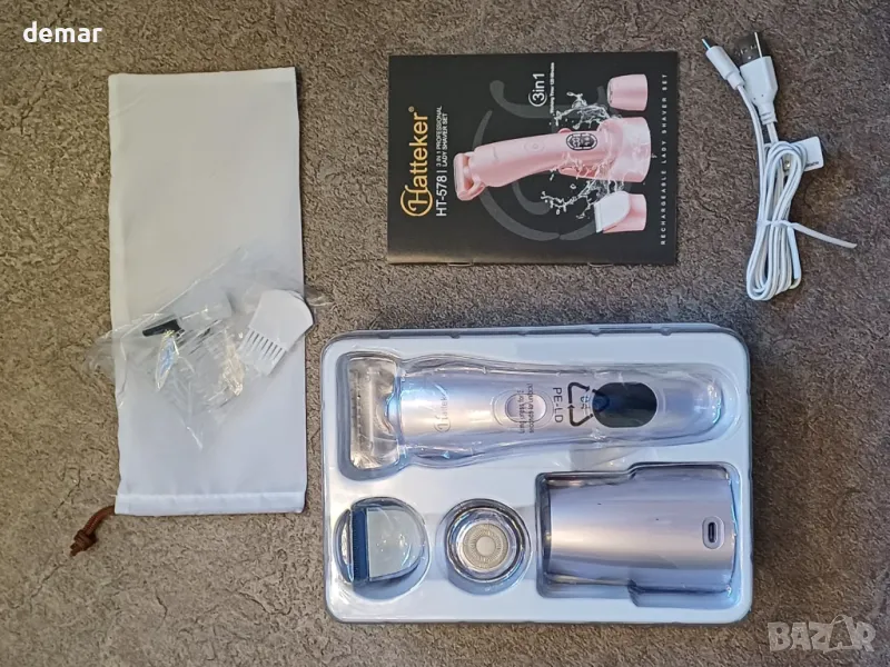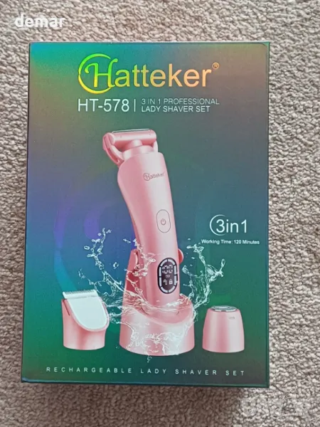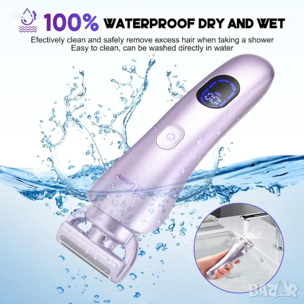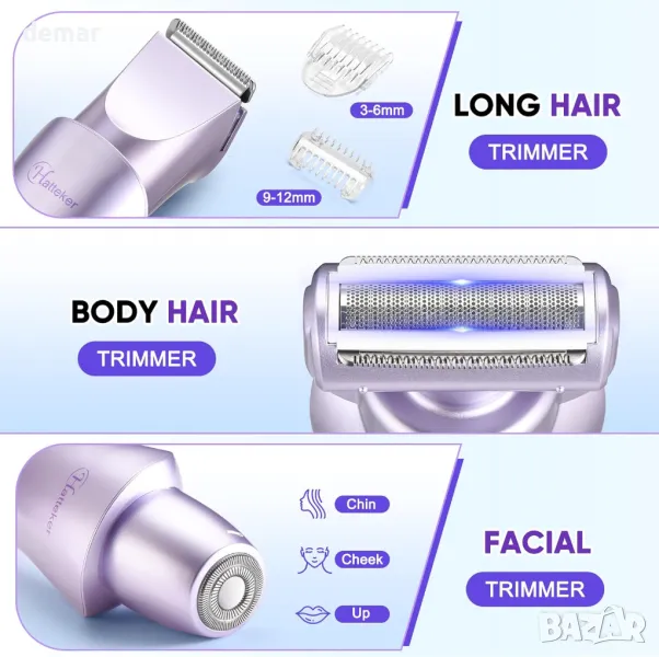 Дамска електрическа самобръсначка Hatteker, Тример за лице и тяло, IPX7, лилава