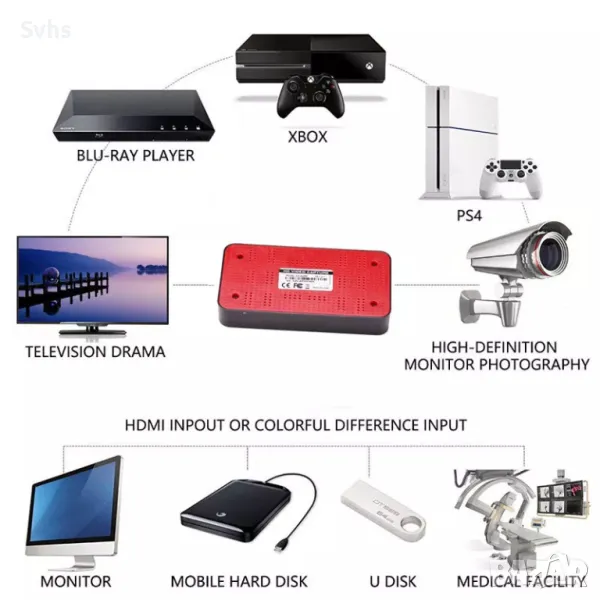 Рекордер / Кепчер записва HD видео, от цифров или аналогов сигнал. Записва на USB или SDcard