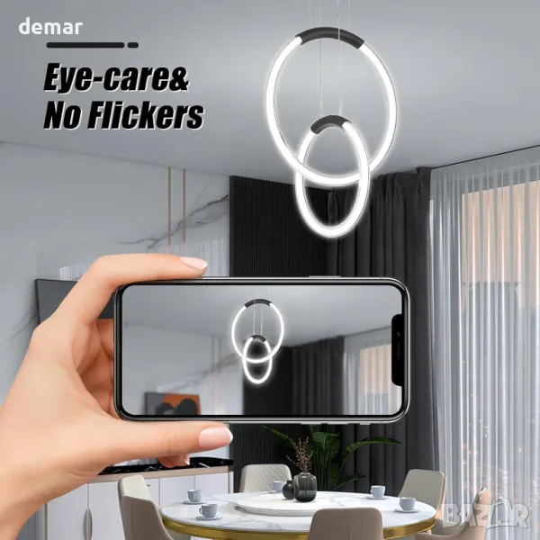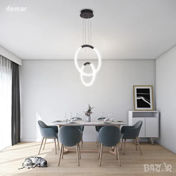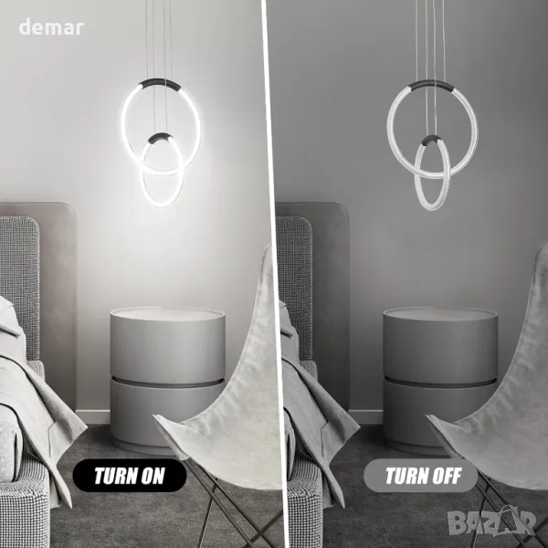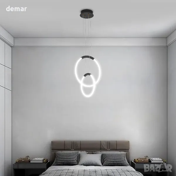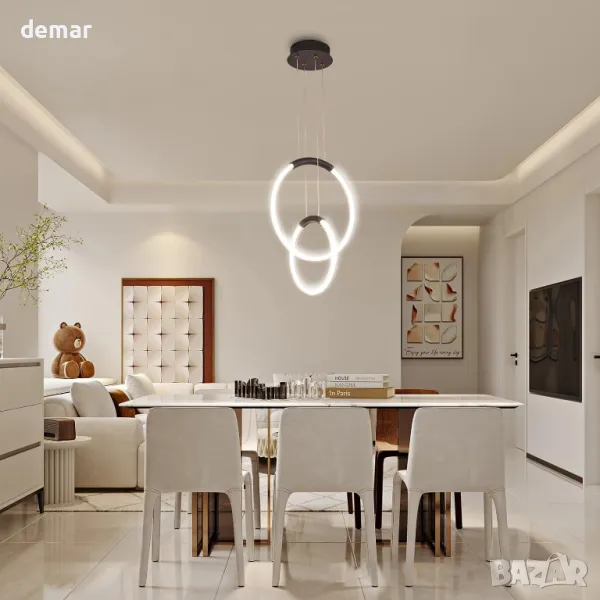 LED полилей Surpars House, модерна таванна лампа, 2 пръстена, регулируеми по височина