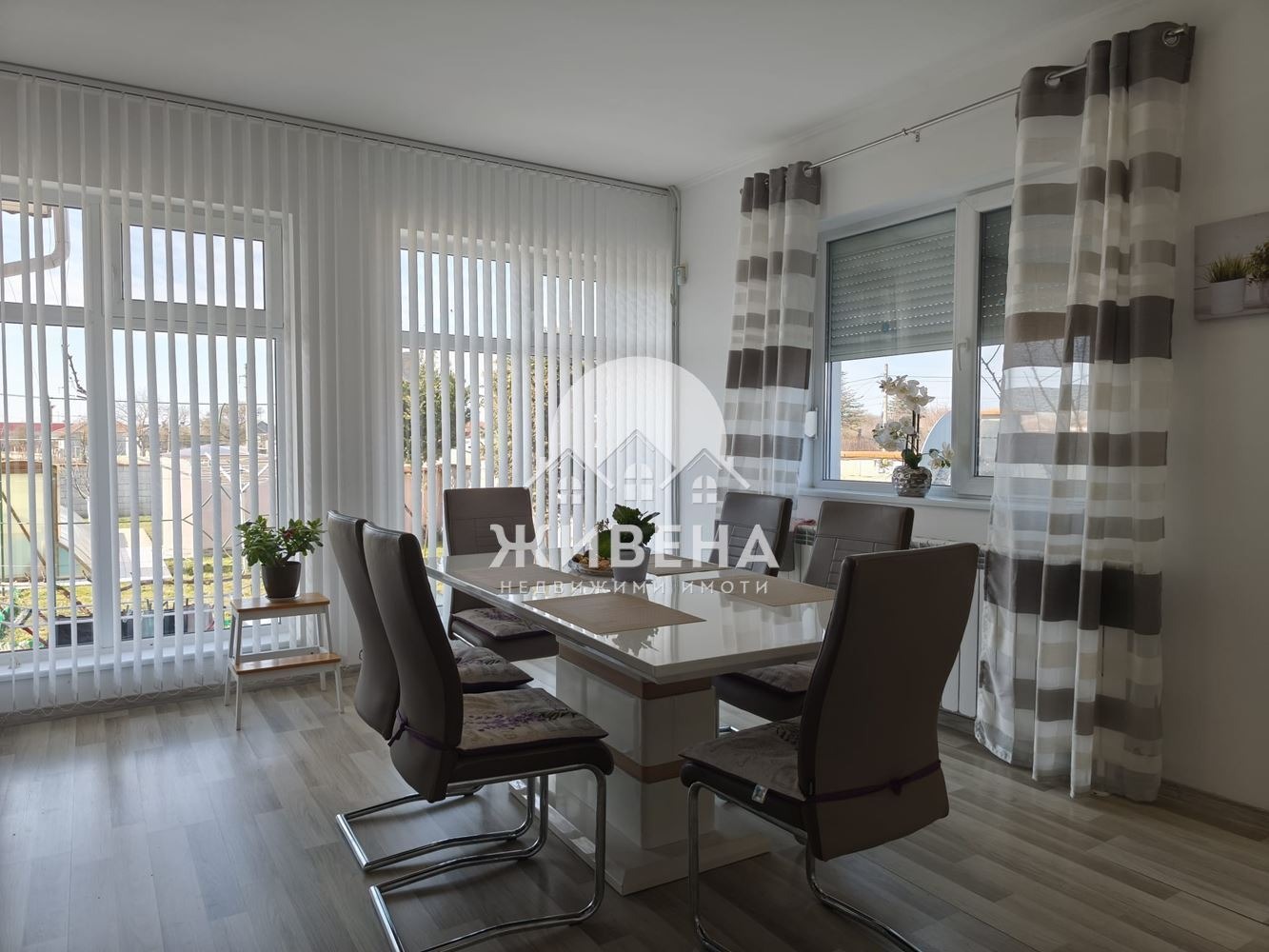 Агенция ЖИВЕНА предлага за продажба МОДЕРНА и ПРОСТОРНА къща в с. Соколово, обл. Добрич. Имотът е с дворно място с площ - 1000 кв.м. Къщата е разположена на един етаж с РЗП: 146 кв.м и се състои от: голям дневен тракт с кухня и трапезария (около 50 кв.м) и складово помещение към нея, 3 слънчеви спални и 2 бани с тоалетни. Стаите са просторни с високи тавани. Продава се обзаведена, както е на снимките. Отоплението е централно с