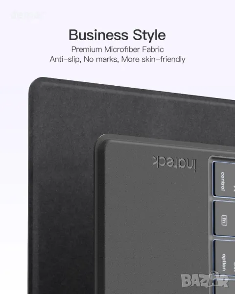 Изключително леко само 340 грама и дебелина само 6 мм, това устройство се побира лесно в чанти и е направено от нехлъзгаща се, прахоустойчива и щадяща кожата тъкан от ултра влакна. Той се свързва с три устройства чрез Bluetooth и работи в Windows, iPad OS, Android и iOS с автоматично разпознаване на системата. Моделът включва по-голям тъчпад със защита срещу грешки и просторни клавишни капачки за удобно писане. Той поддържа приложението Inateck Origin за лесно прехвърляне на данни без облачно съхранение и включва вградени AI инструменти като превод и въпроси и отговори, достъпни чрез проста команда FN+R.