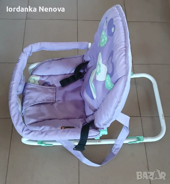 Бебешки шезлонг с регулеруема облегалка, с предпазни колани,лесен за пренасяне.