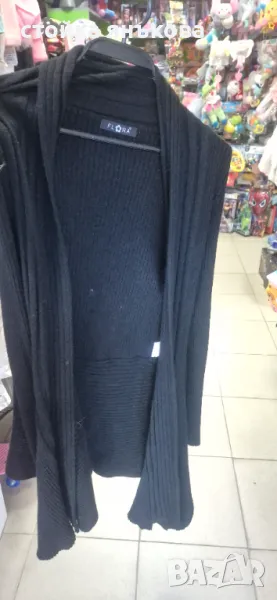 Продавам дамска черна жилетка, много интересен издължен модел. Цветът е наситено черен.