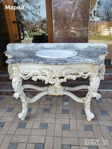 Конзола с огледало,мивка и мрамор.