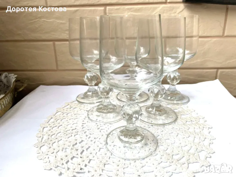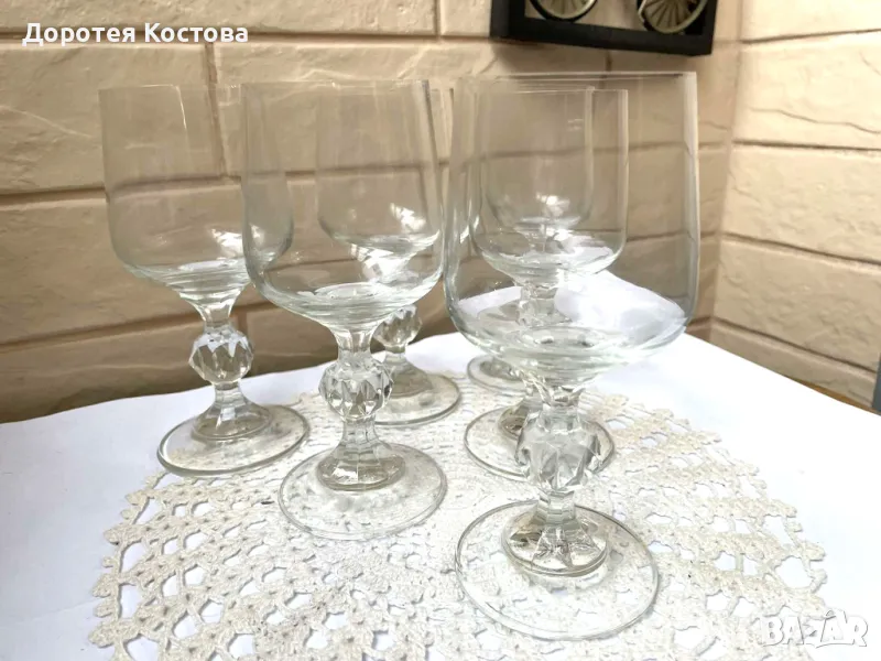 Красиви стари кристални тънкостенни чаши, 6 бр, купени са едно време, но са ползвани броени пъти, само си стоят в шкафа. Размерите са на снимките. Прекрасни и качествени, с хубав и продължителен звън. Малка фабрична забележка на последната снимка. Цена - 50 лв.