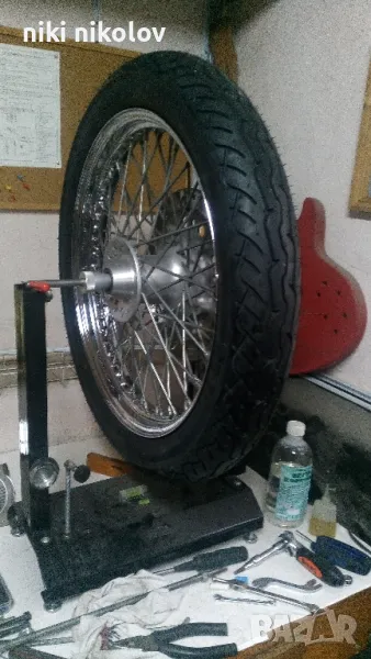центроване с индикаторен часовник,изправяне на ринга при необходимост ,баланс ,монтаж демонтаж на мото гуми