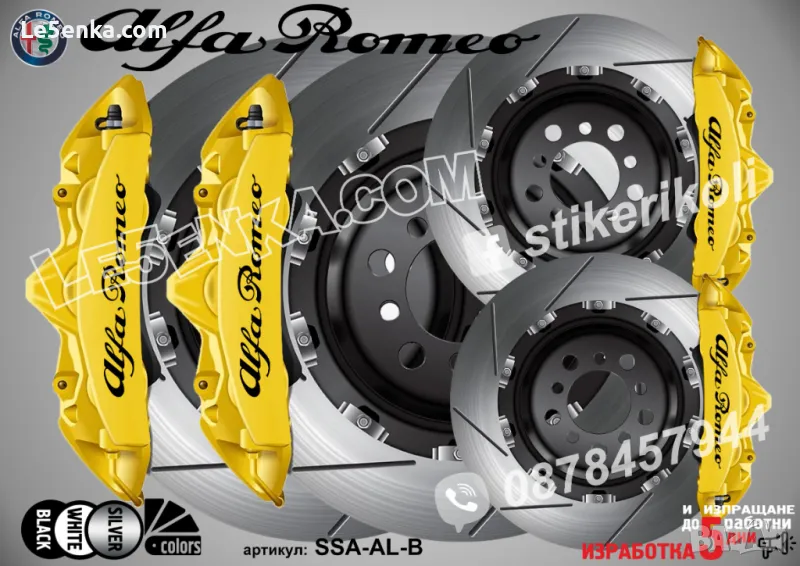 Надписите са предназначени за капаци на спирачни апарати и са изработени от качествено автомобилно фолио. Могат да се лакират.Цената е за комплект от 4 бр. от един цвят. Размерите на предните са 11 см., а на задните 8 см. Спирачните апарати са различни модели и големини, поради това моля съобразете дали тези размери са подходящи за вашите апарати - при възможност и с уговорка е възможно, размерът на надписите да се измени.