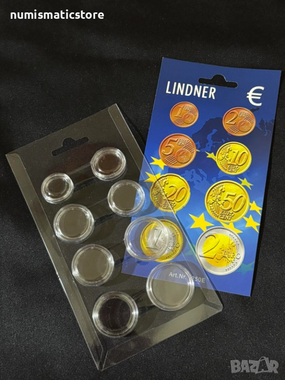 Висококачествени капсули за монети Lindner, произведени в Германия.