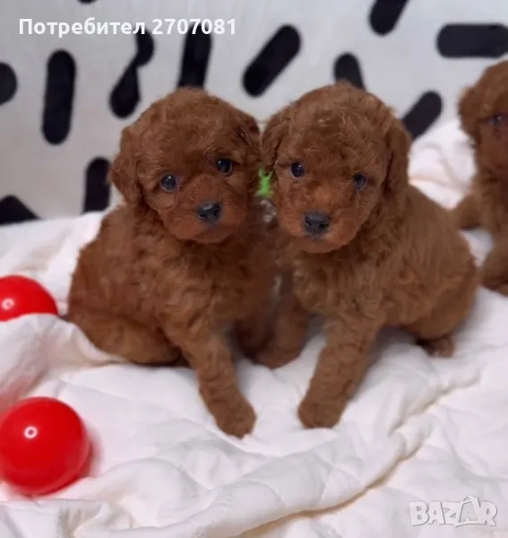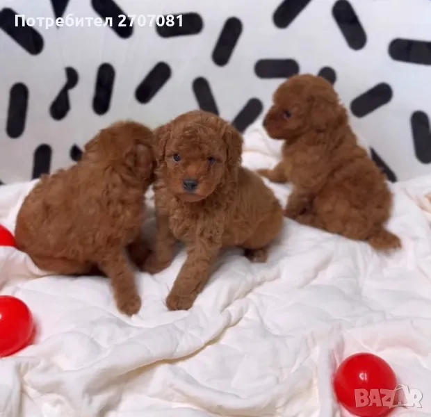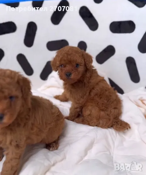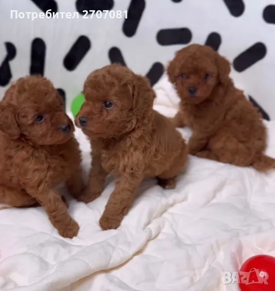 той пуделчета, които нямат никаква смесица с други породи, чист цвят, а родителите може да видите на снимките. Разполагаме с две момичета и две момчета. Едното момиче вече е капарирано. Кученцата се дават с две или три ваксини, с една ваксина НЕ ДАВАМЕ КУЧЕ. Те са вътрешно обезпаразитени с Прококс. Храним ги с хубава храна и се грижим отлично за тях. Преди да вземете кученцето ние правим тройния тест - Корона, Паровироза и Корона. След закупуването му, ние сме винаги на разположение за въпроси. Ежегодно организираме пуделски срещи на които обменяме опит и превръщаме срещата в истинска забава. С кученцето вървят и инструкции за отглеждането му. Нашите кучета са гледани по най-добрият начин, ваксинирани, обгрижвани. Даваме им имуностимуланти Ветомуун. Ние не разчитаме, че ще се привържете към кучето и ще забравите, че сте искали ТОЙ, а той е станал/а МИНИ, или искате МИНИ, а той е станал среден. Когато си купите от нас куче, то е такова каквото сте искали и очаквали. Може да предоставим и препоръки от наши клиенти. Нашите мъничета не се гледат в клетки, а в специални кошарки, водата, пелените се сменят през два часа! Стаите поддържат температура, която е здравословна за бебетата и майката, разполагаме с инфрачервени лампи, климатик и подово отопление. Бащата е висок е 26 см и тежи 3.5 кг., внос от Русия, а майката е висока 27 см и тежи 4 кг. Ние отглеждаме пудели от 15 години и знаем роднините на кучето от три поколения! Не правим смесеци, нито с различни породи, нито смесваме ТОЙ с МИНИ или обратното. Кученцата ще могат да отидат при новите семейства през юни. Ако решите да вземете куче от нас капарирате го, ние даваме ДОГОВОР, който пази Вашите права, нашити, както и правата на кученцето.