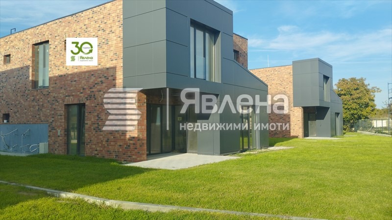 Явлена предлага къща, ново строителство, с РЗП 223кв.м. и самостоятелен парцел 584кв.м. Въведена е в експлоатаци, намира се на 40м от главния път. Достъпът е лесен и инвеститора ще изгради пътя до къщите. Разпрделение: I ет.- голяма трапезария с кухня и холова част близо 60кв.м., антре, тоалет и килер/техническо помещение за парното/. II ет. - три големи спални, всяка с гардеробна и баня/тоалет, перално помещение и лоджия. Къщата има две паркоместа. Сградата е със стоманобетонна конструкция, като стените са от керамични блокове, външните с дебелина 25см, вътрешните 12см. Плосък покрив, който ще се отводнява през барбакани към водосточните тръби. Външната изолация е от клинкерни плочи, Еталбонд , изолирани с каменна вата на Кнауф. На покрива е подготвена инсталация за фотоволтаик, а в замазката са положени тръби за подово отопление, което да се свърже към термопомпа. Най-висок клас пречиствателни станции са изградени към всяка къща. Инсталирани са зарядни устройства за електромобил. ЦЕНАТА Е БЕЗ ДДС с възможност за индивидуални схеми на плащане! (yavlenaCOM/137585).