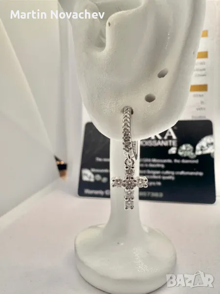Сребърни обеци кръстчета с мойсанит (Диамант) → Обява 49718169