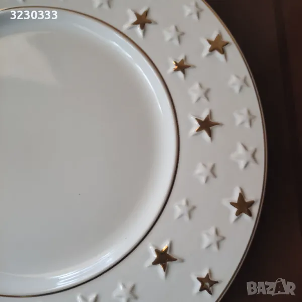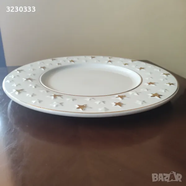 Голямо празнично порцеланово плато, коледни звезди, отлично, отдолу е с лепенки против преплъзване, който иска може да ги премахне-диаметър-32.5 см. По Еконт с 10% отстъпка.