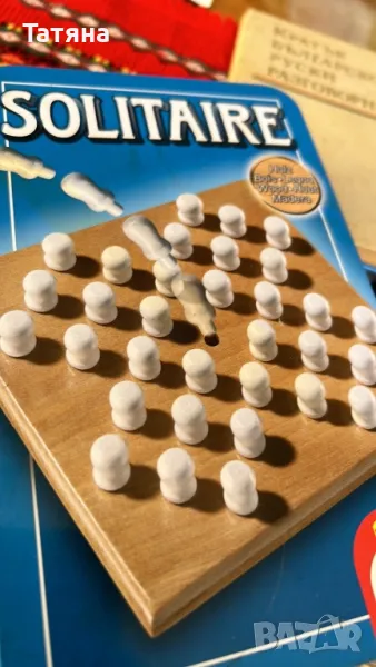 Поставете 32 жетона в дървената дъска по такъв начин, че накрая да остане само едно парче - точно в средата
