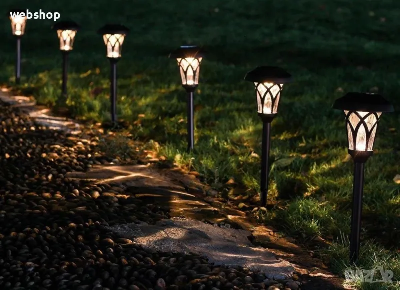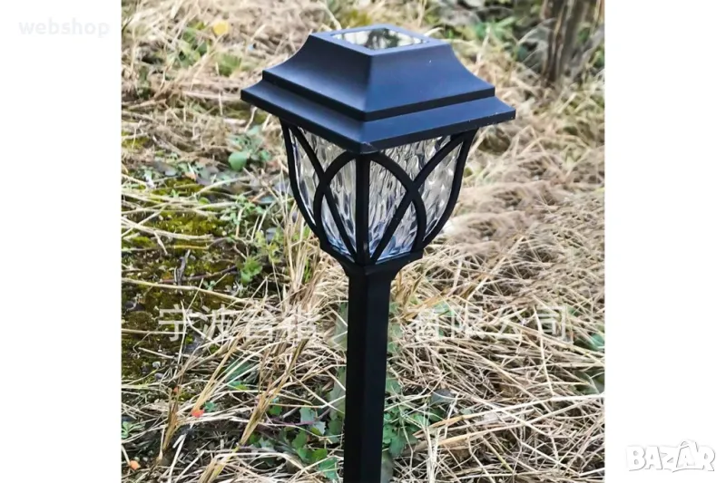 Дизайнът на лампата напомня за старинен фенер, което със сигурност ще придаде повече романтика на атмосферата във вашата градина. Формата е на пресечен конус, декориран с пресечени нишки в черен цвят, под които са стъклените стени на фенера. Соларният панел е разположен в горната част на капака, като остава красиво декориран. Лампите са лесни за пренасяне, така че винаги може да промените тяхното местоположение и подредба и да постигнете разнообразие.