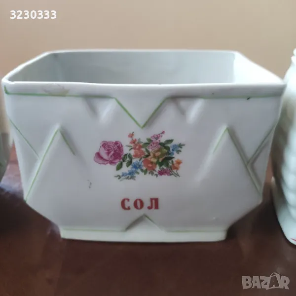 Стари порцеланови буркани за подправки с цветен флорален декор. Забележка на буркана за ориз - снимано, цена -8 лв. Този за сол е отличен ,цена - 10 лв. По Еконт с 10% отстъпка.