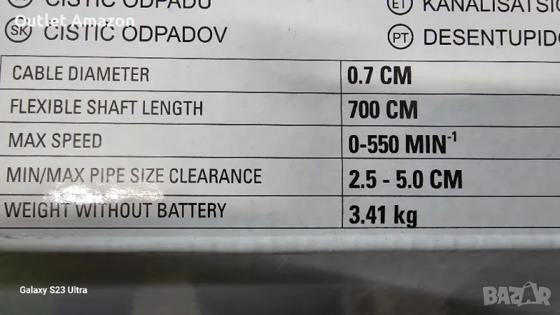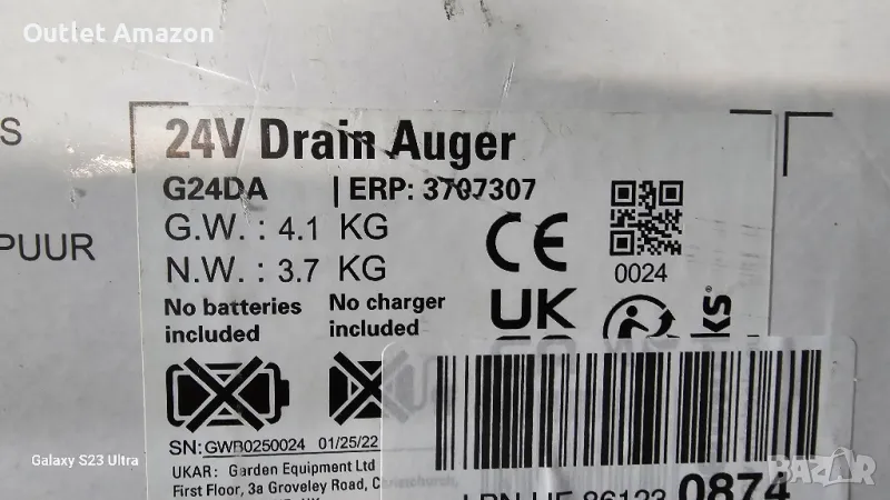 Уред за почистване на канали с 24V батерия Greenworks G24DA
