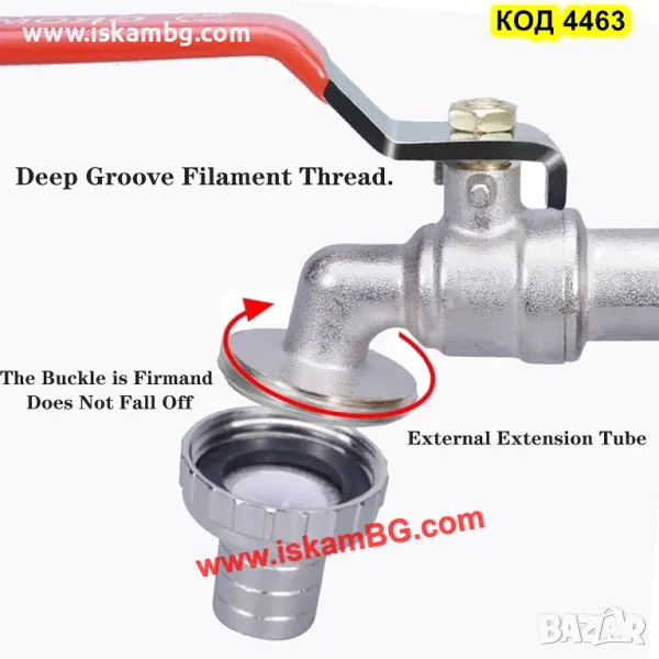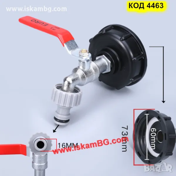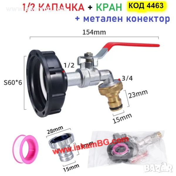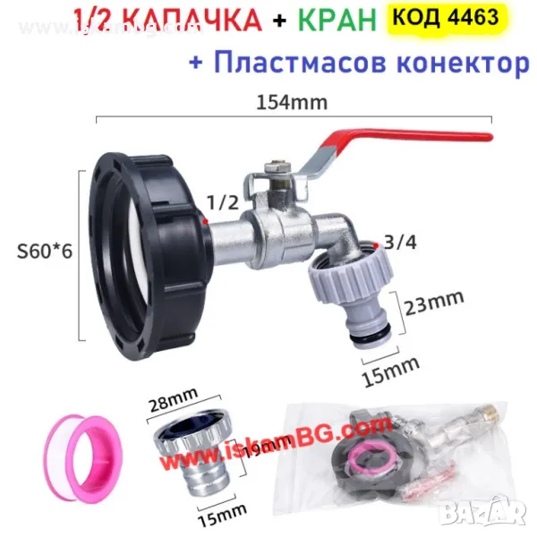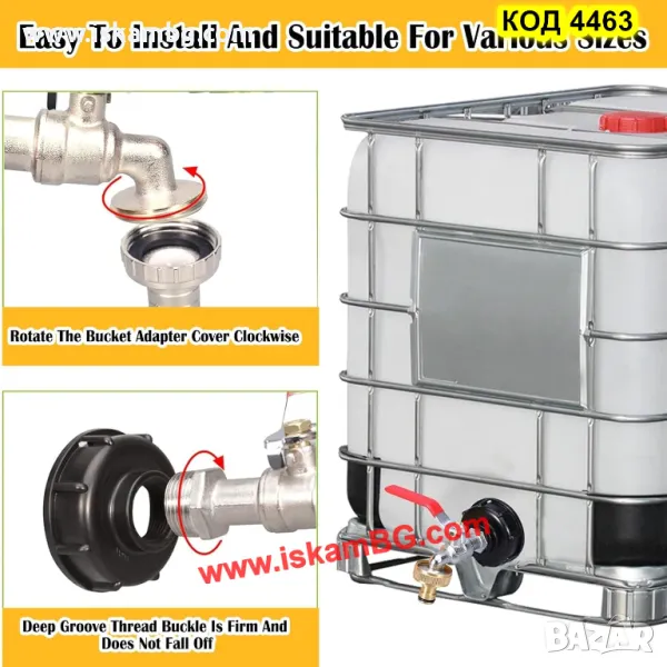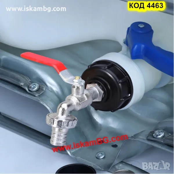 Кран за резервоар за вода и капачка редуктор преход за IBC бидон 1000 литра - КОД 4463