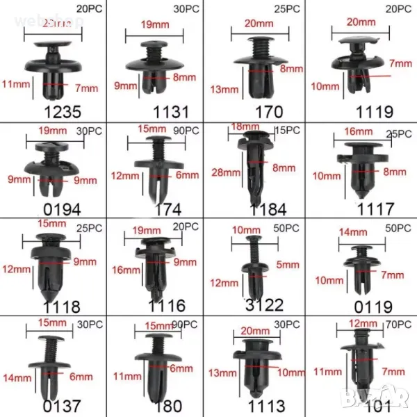 Този изчерпателен набор от пластмасови автомобилни скоби и щифтове предлага гъвкавост и полезност в широка гама от автомобилни ремонти и проекти. Разнообразието от размери и типове го прави идеален за интериорни покрития, калници, брони и други универсални приложения, покриващи повечето марки автомобили.