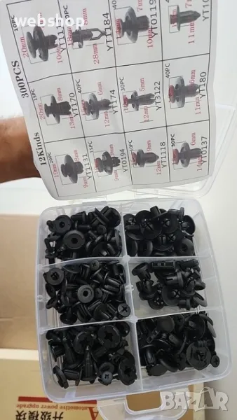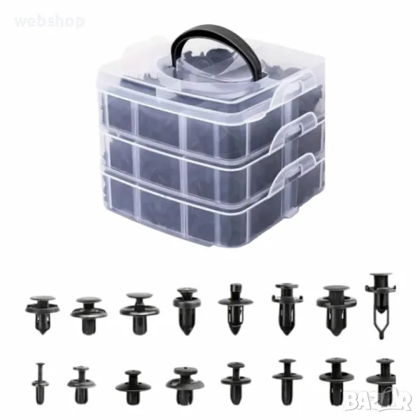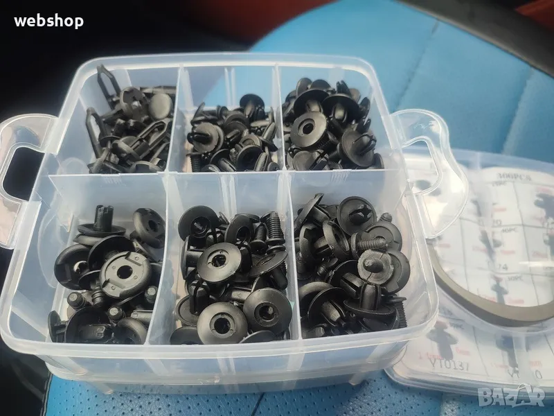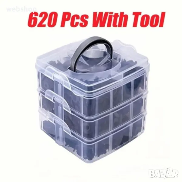 Комплект от 620 части, скоби, щипки и пластмасови щифтове за фиксиране на кола