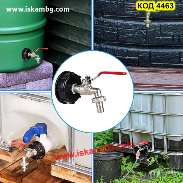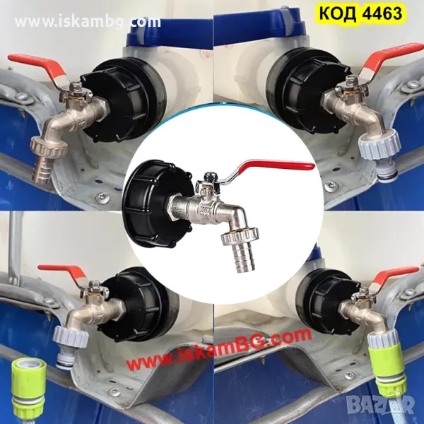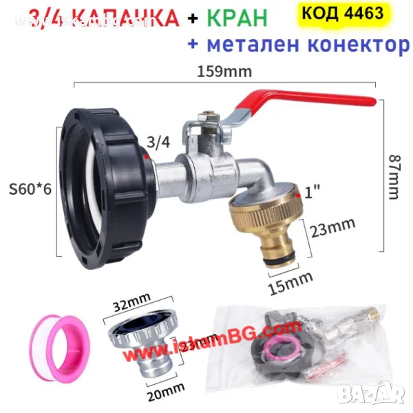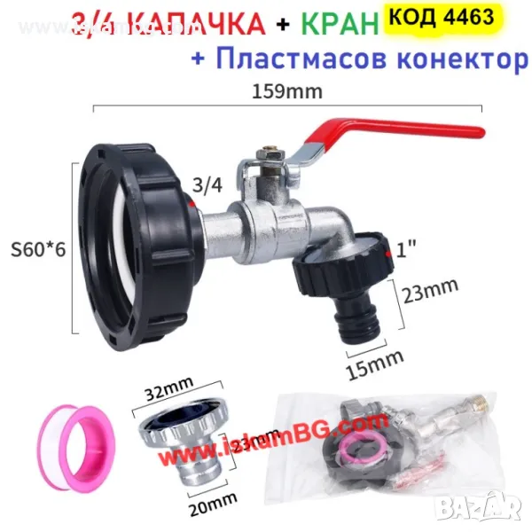 Канелка кранче за бидон резервоар 1000 литра IBC и капачка преход редукция 1/2 или 3/4 - код 4463