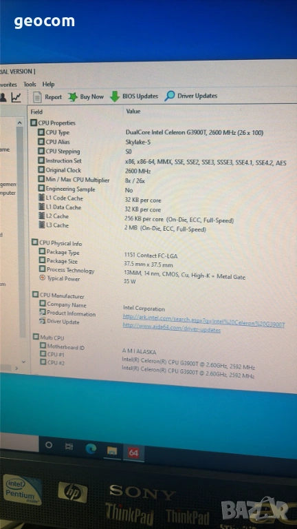 2. Intel Celeron Dual Core G3900T.