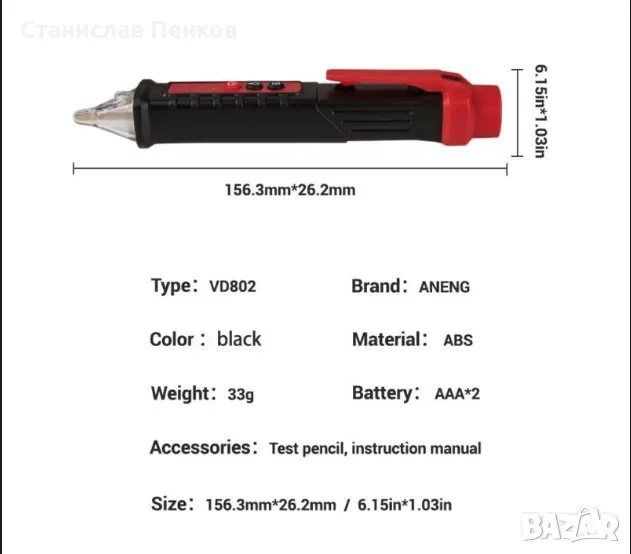 ANENG VC1010. Детектор за напрежение 12-1000V волтов ток. Безконтактен автоматичен тестер-метър 2024 Нов