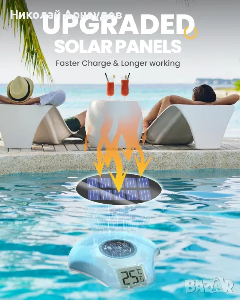 Термометър за басейн BALDR, термометър за плуване със слънчева енергия → Обява 49722848